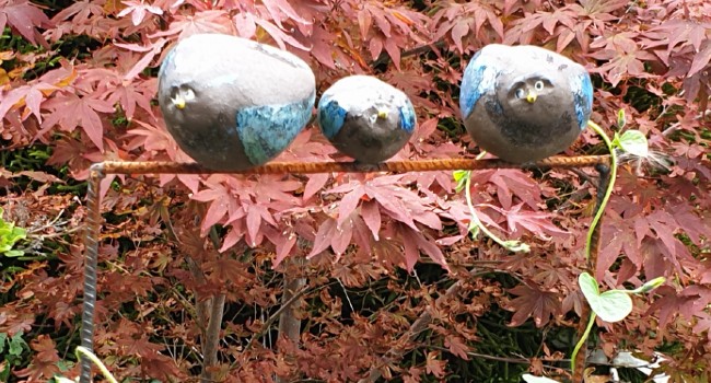 Ik werk graag met natuurlijke materialen en probeer van alles uit. De ene keer met meer succes dan een andere keer. Door te blijven kijken naar het werkstuk, er wat af te halen, wat aan te ‘plakken’ wordt het meestal echt de moeite waard. Vormen; die je om je heen ziet verwerken en ‘grappige dieren’ hebben mijn voorkeur.